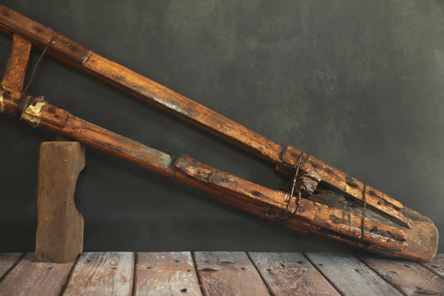 • 第一代具备接受腔的腿部形态的假肢,由木匠或病友们自发成立的假肢小组制作而来。外腔由木头或铁皮塑形,内部填充海绵增加舒适性,顶部加装皮带固定。