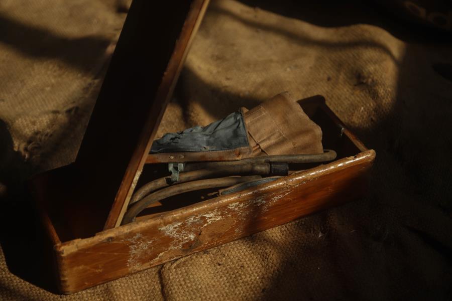 • 湖南新宁胭脂氹康复村,驻村五十年的医生唐中和使用的老旧听诊器和医药箱。这个村不通路,不通电,每次进村他就是背着这套行头,村里9个老人的口粮也靠他运去。2012年唐中和被评为全国道德模范。